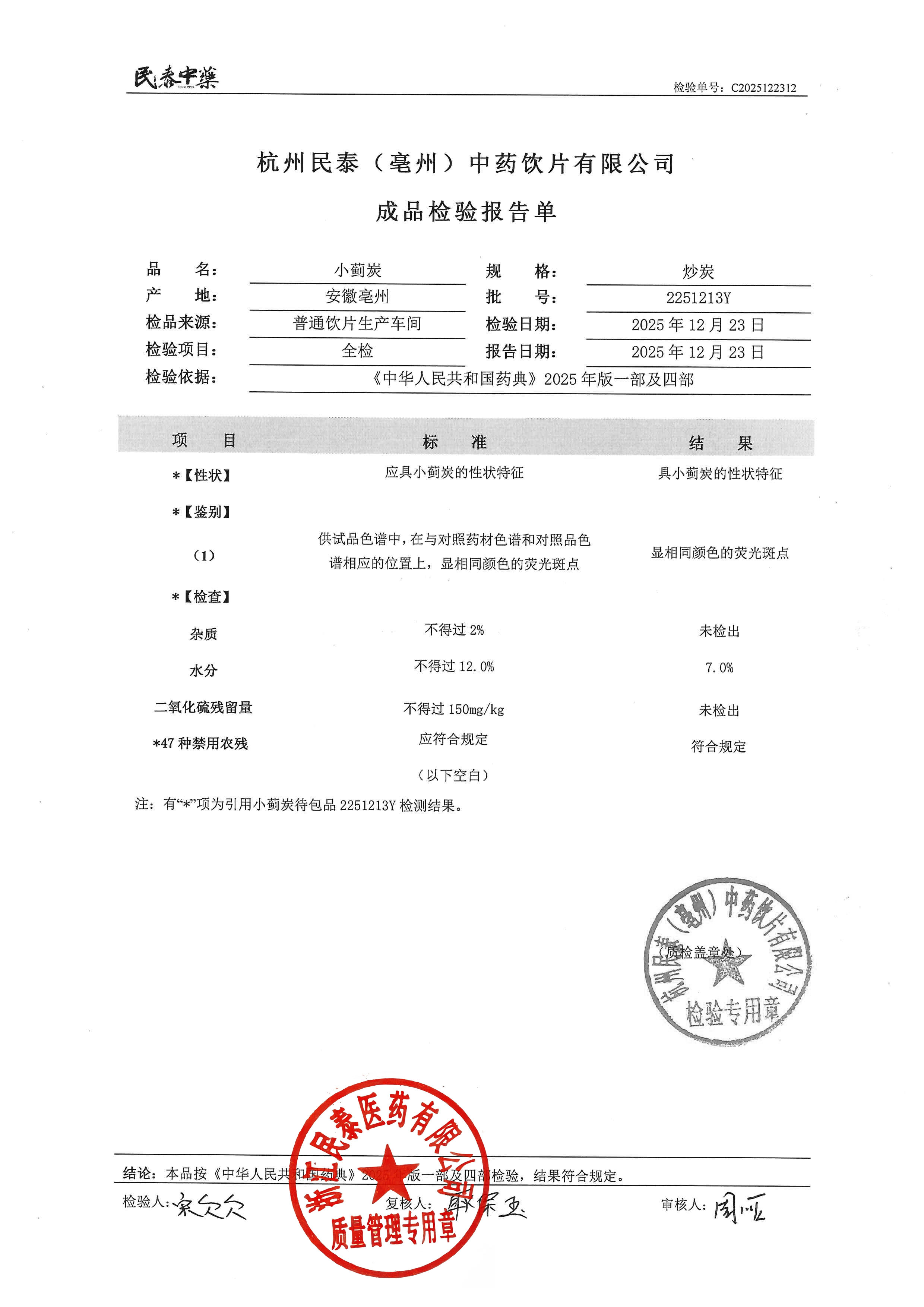 杭州民泰(亳州)中药饮片有限公司 |