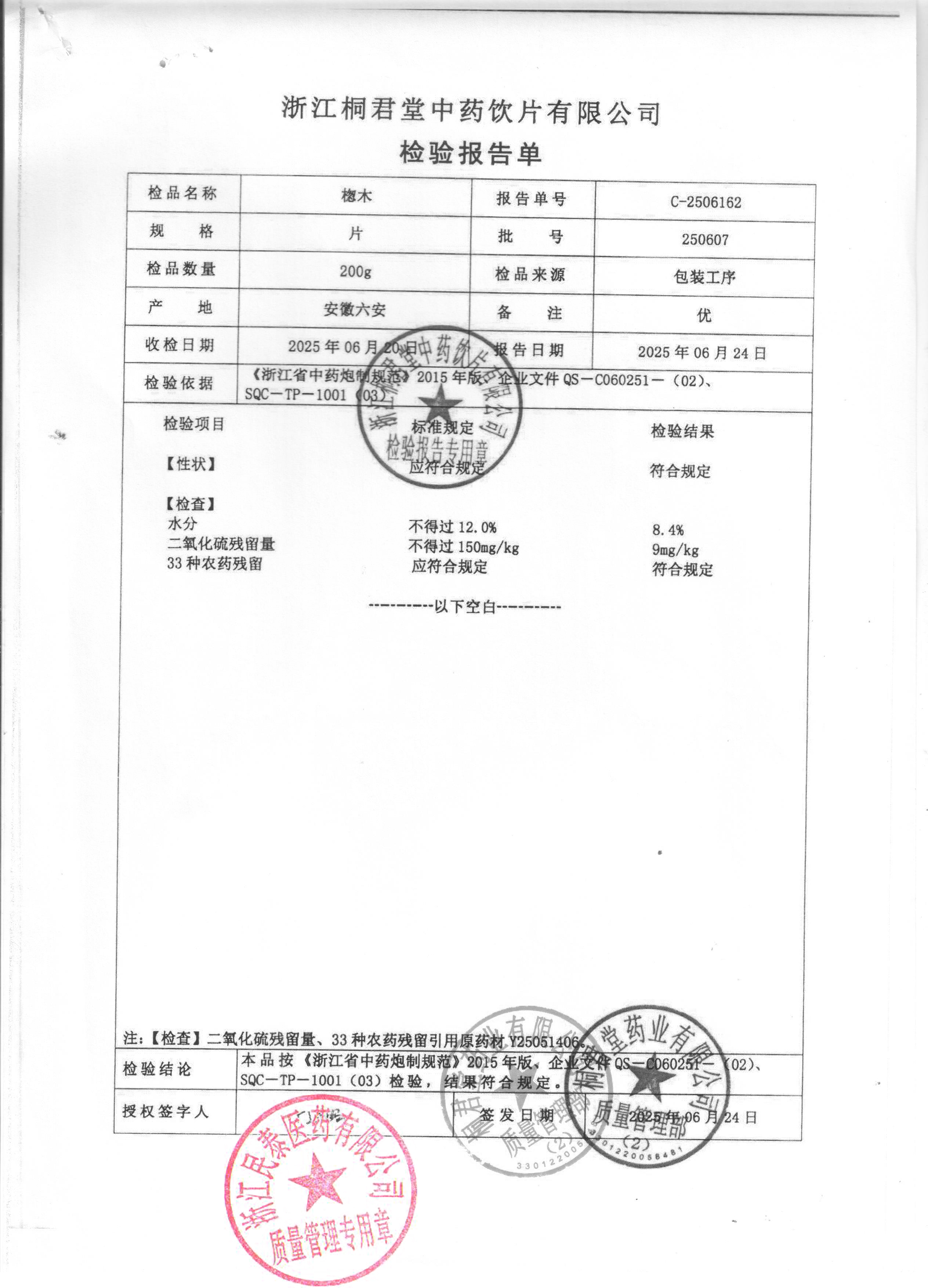 浙江桐君堂中药饮片有限公司 |