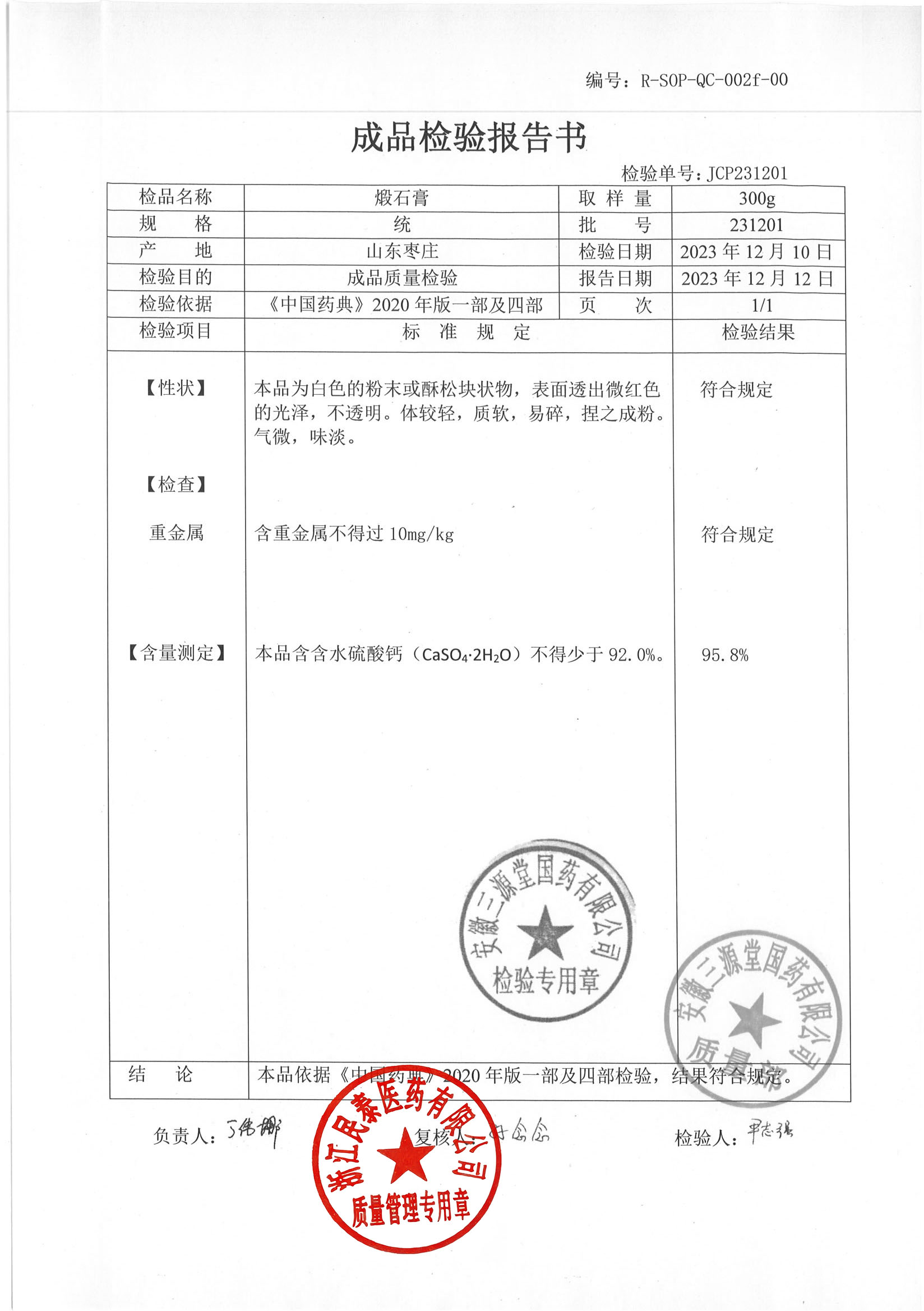 煅石膏 |