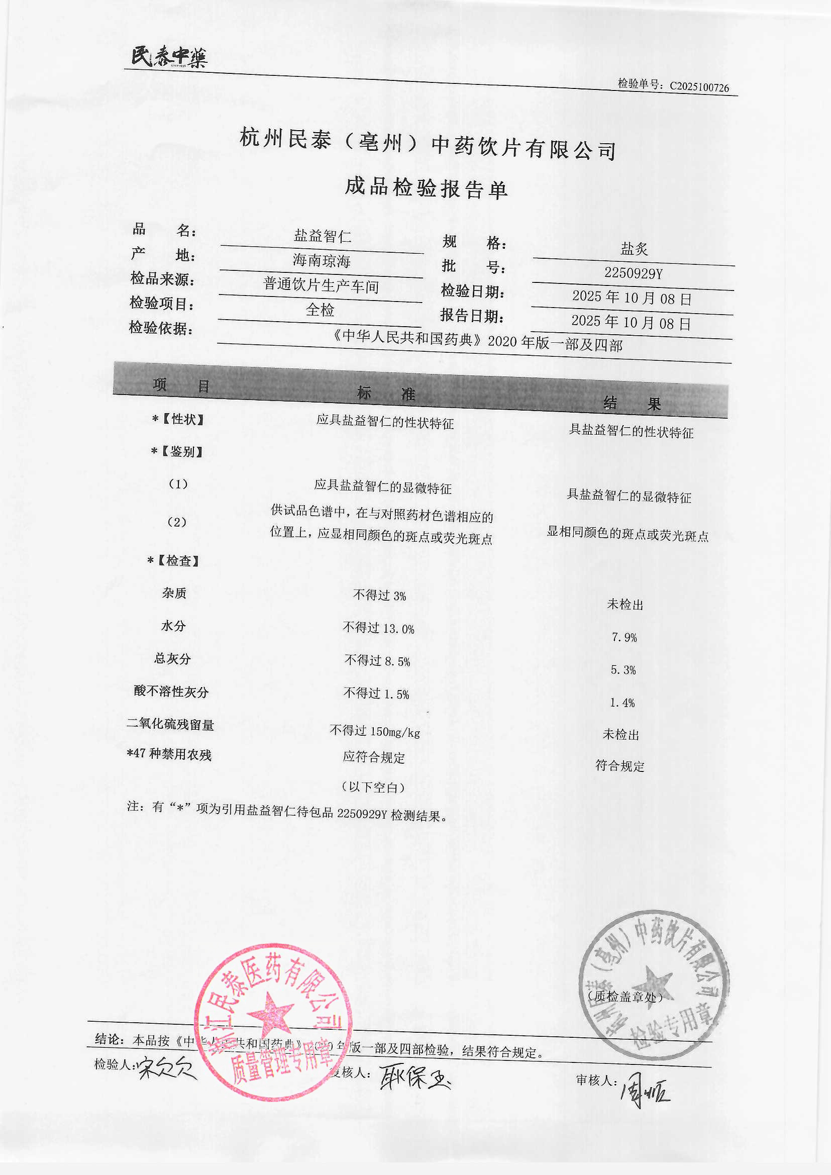 杭州民泰中药饮片有限公司 |