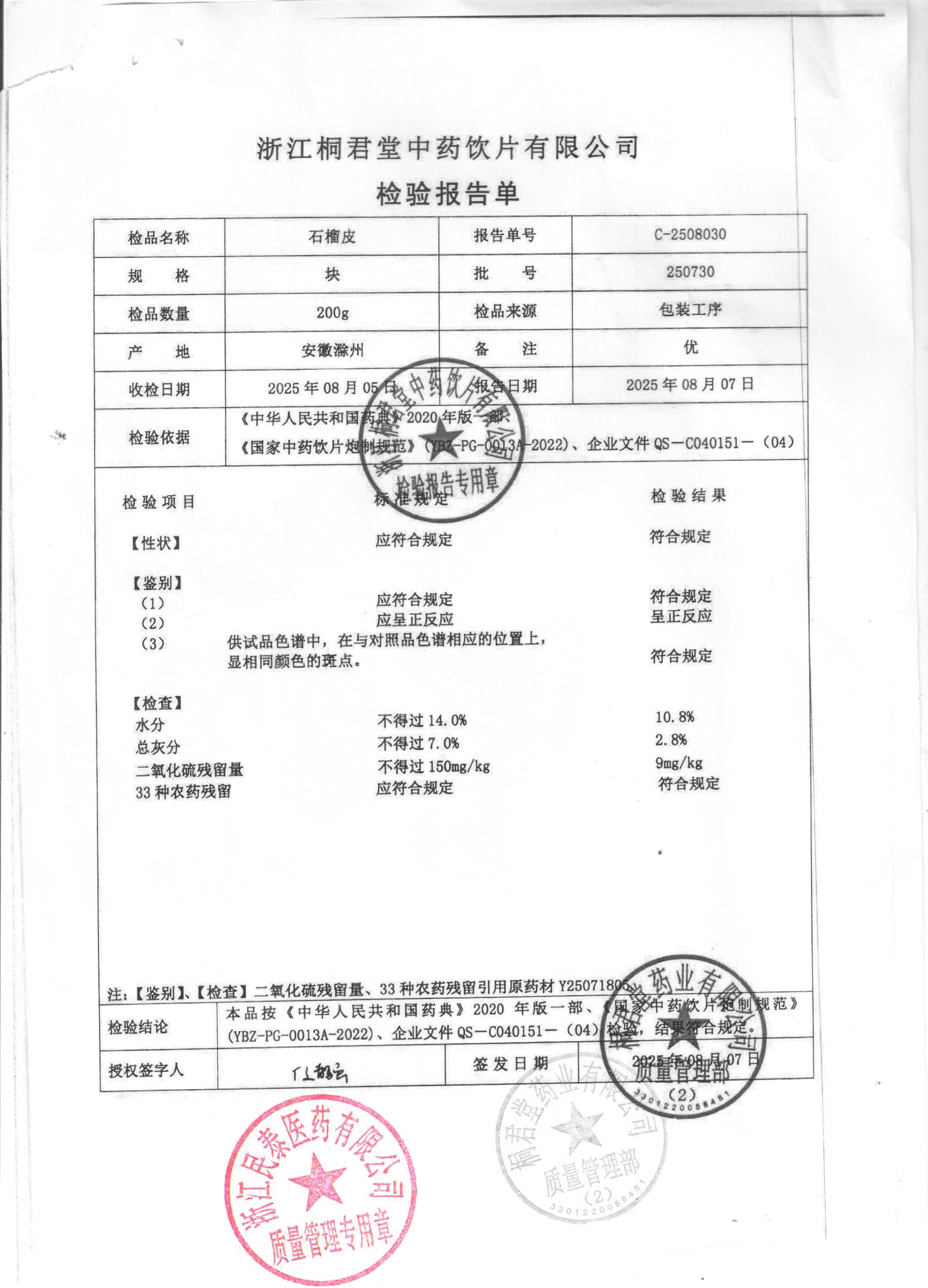 浙江桐君堂中药饮片有限公司 |
