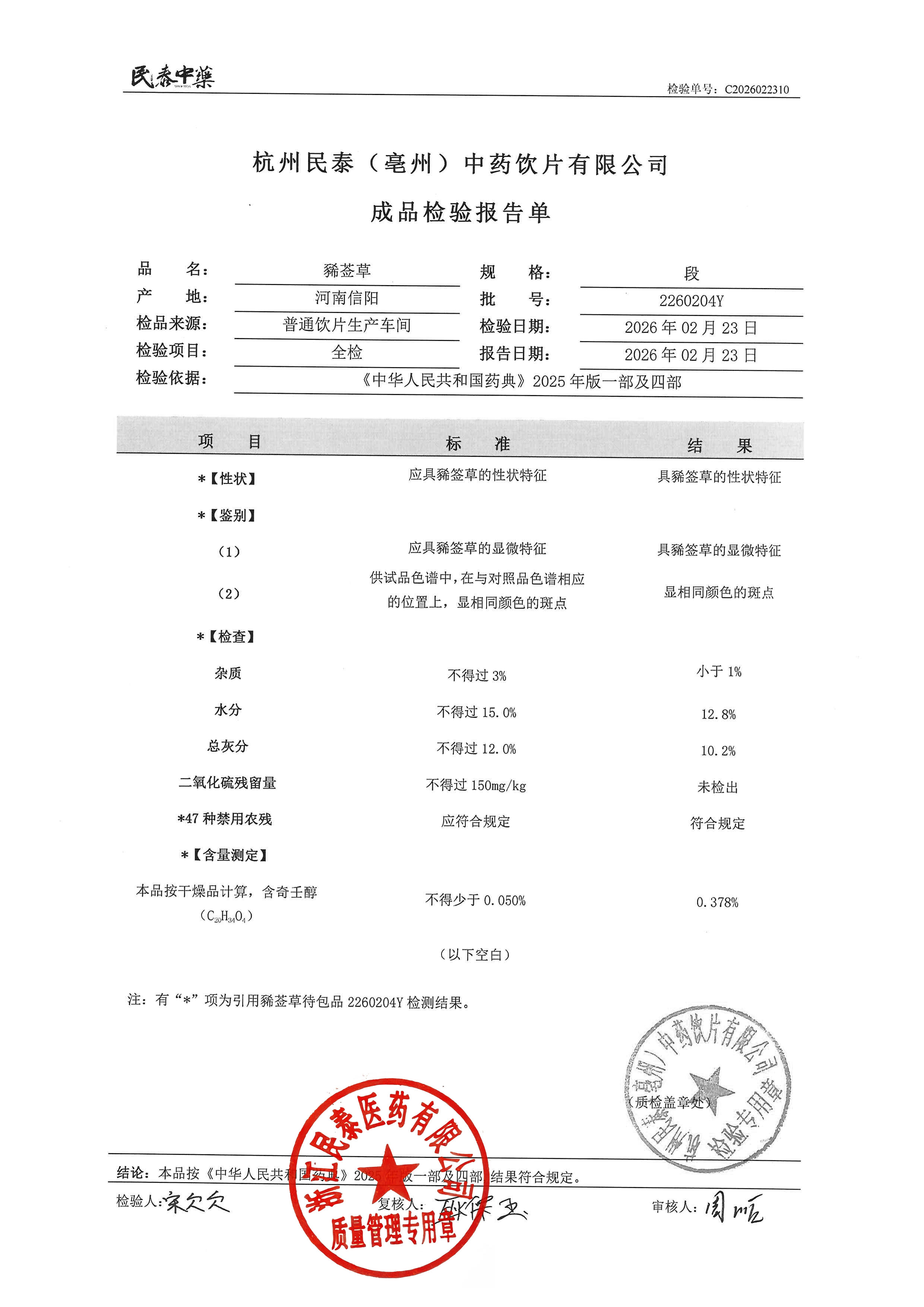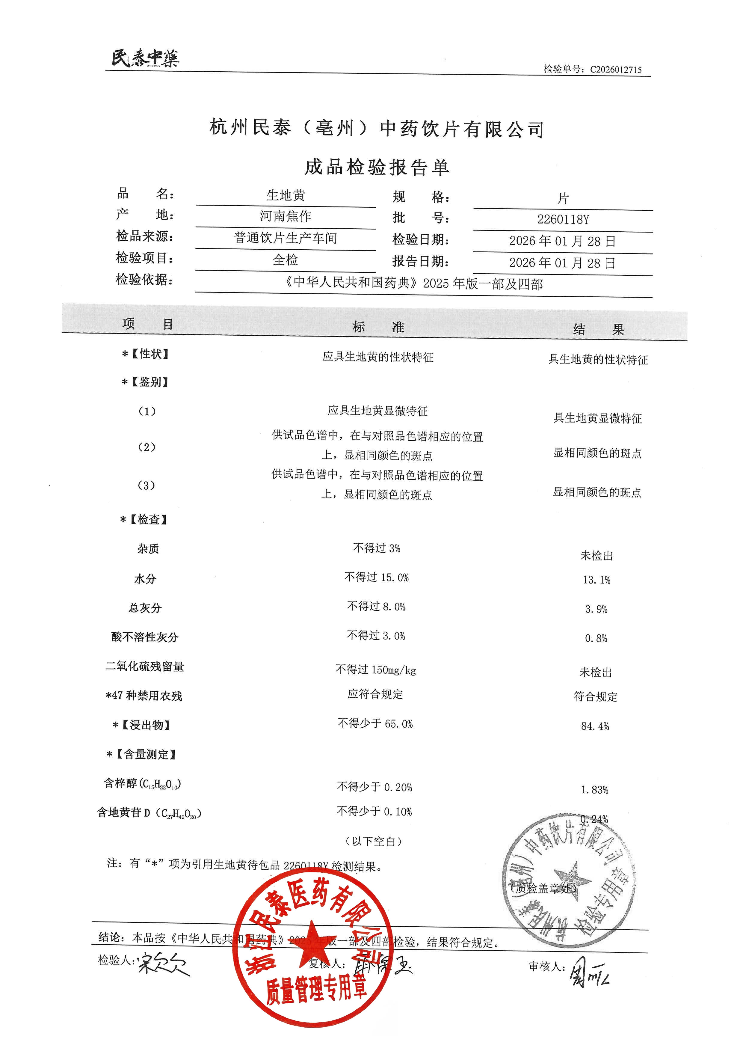 杭州民泰中药饮片有限公司 |