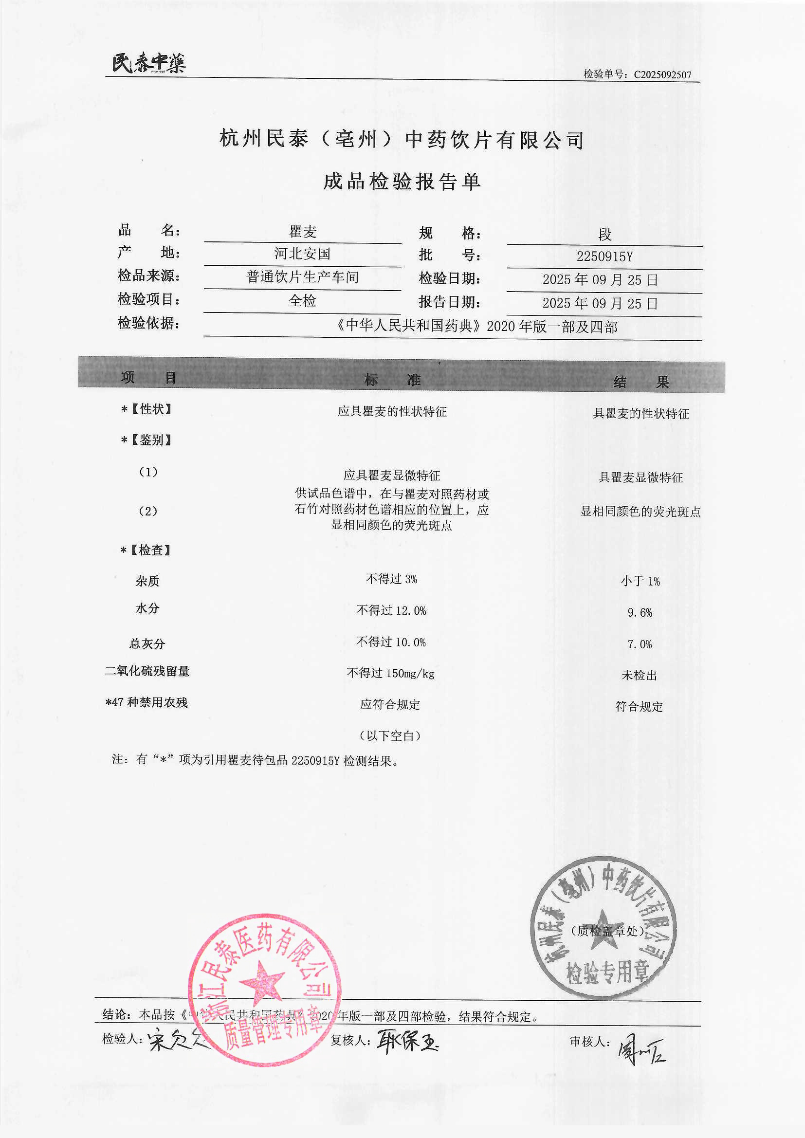 杭州民泰(亳州)中药饮片有限公司 |