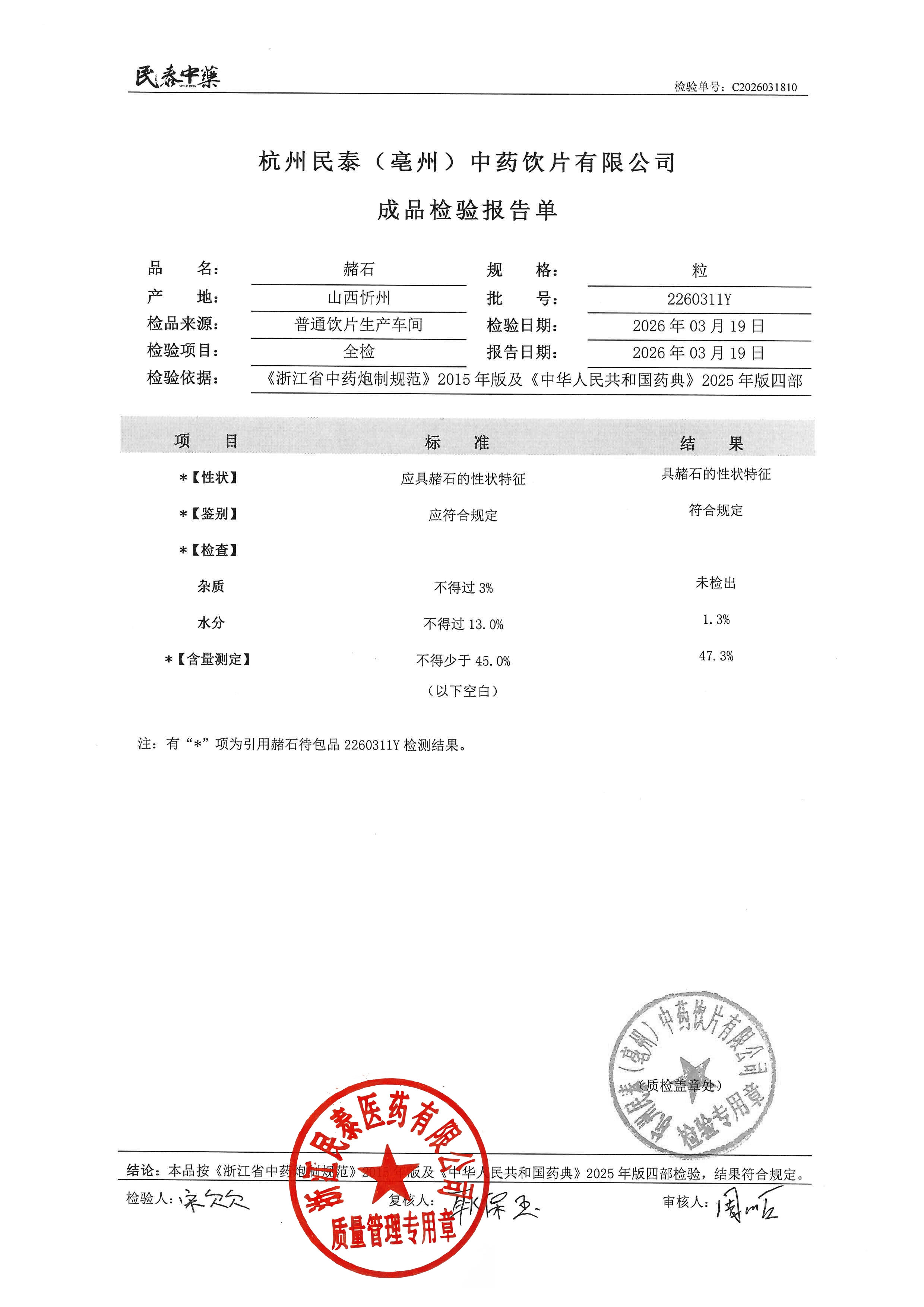 杭州民泰中药饮片有限公司 |