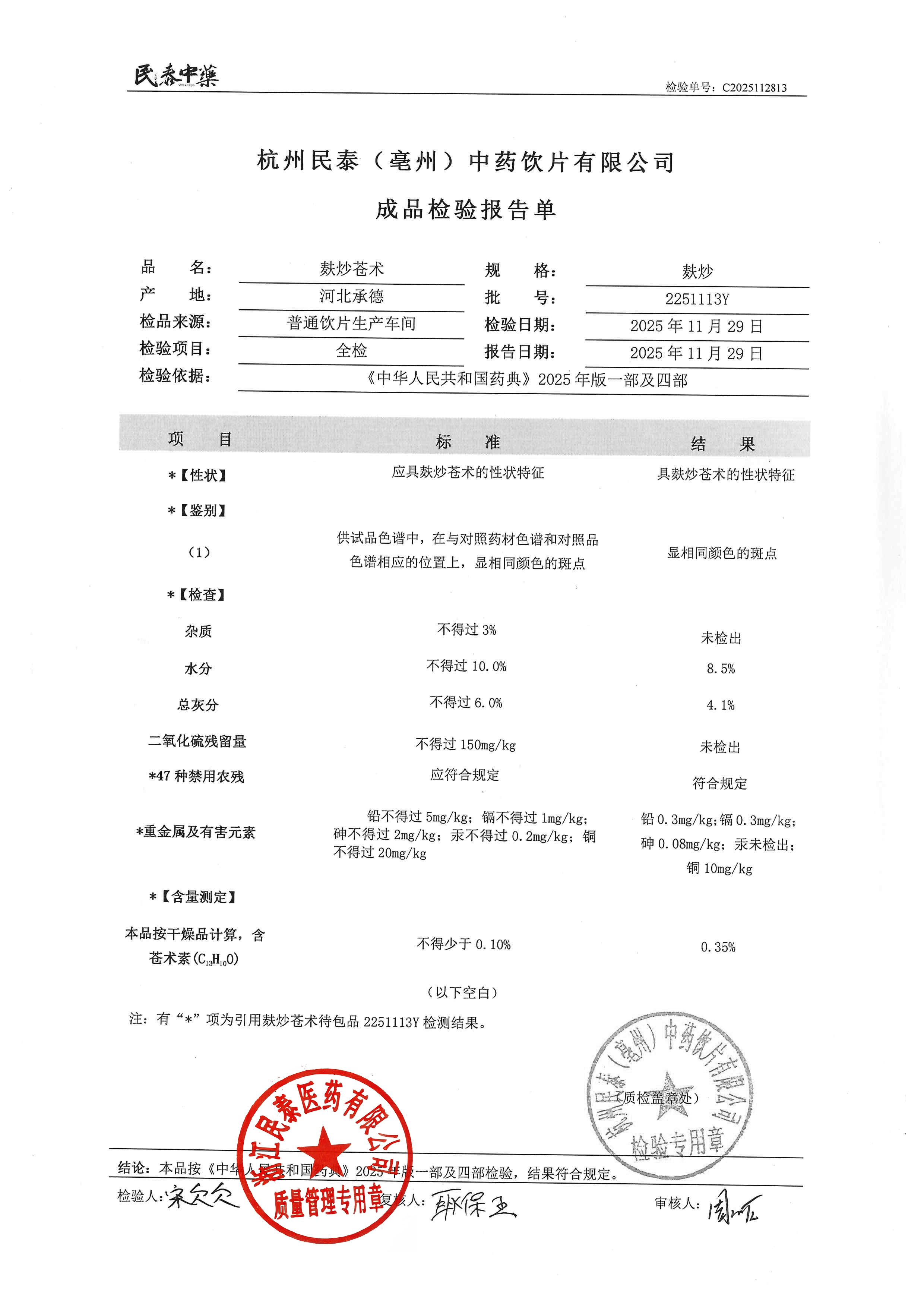 杭州民泰(亳州)中药饮片有限公司 |