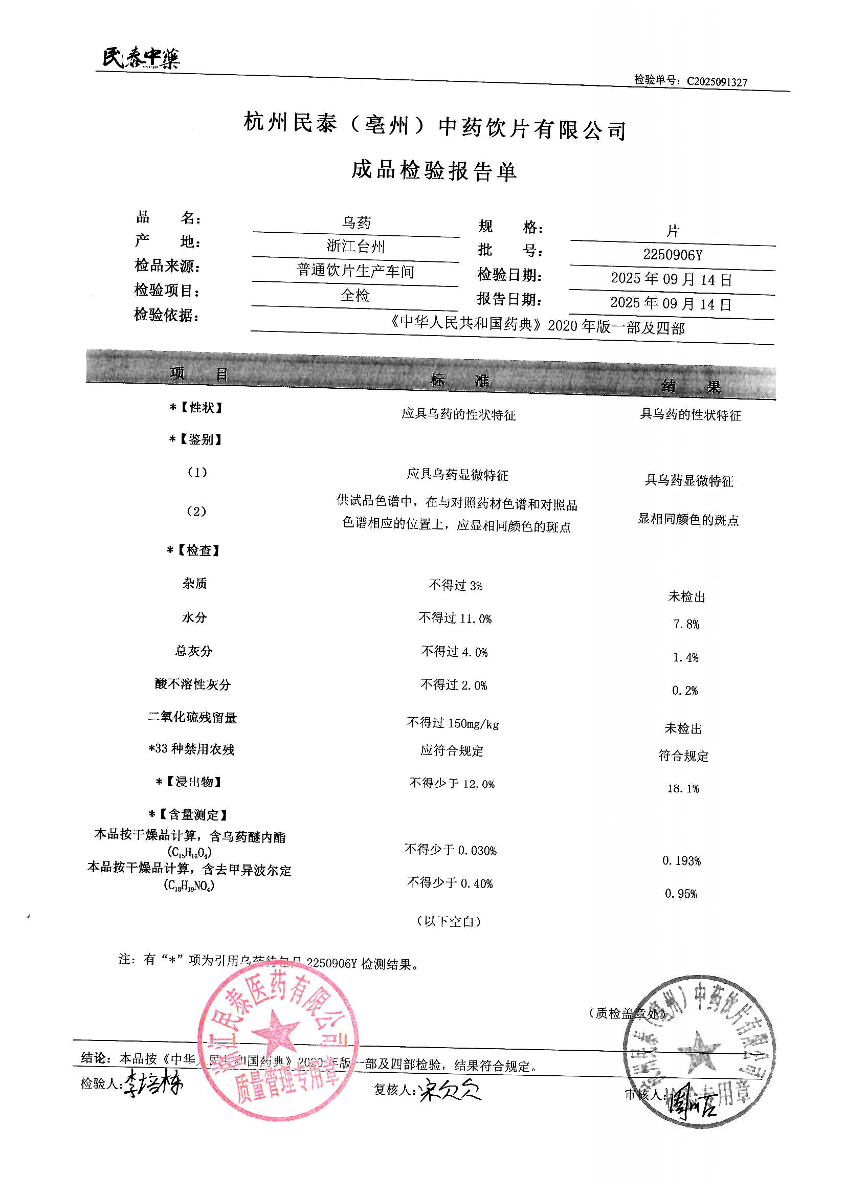 杭州民泰中药饮片有限公司 |
