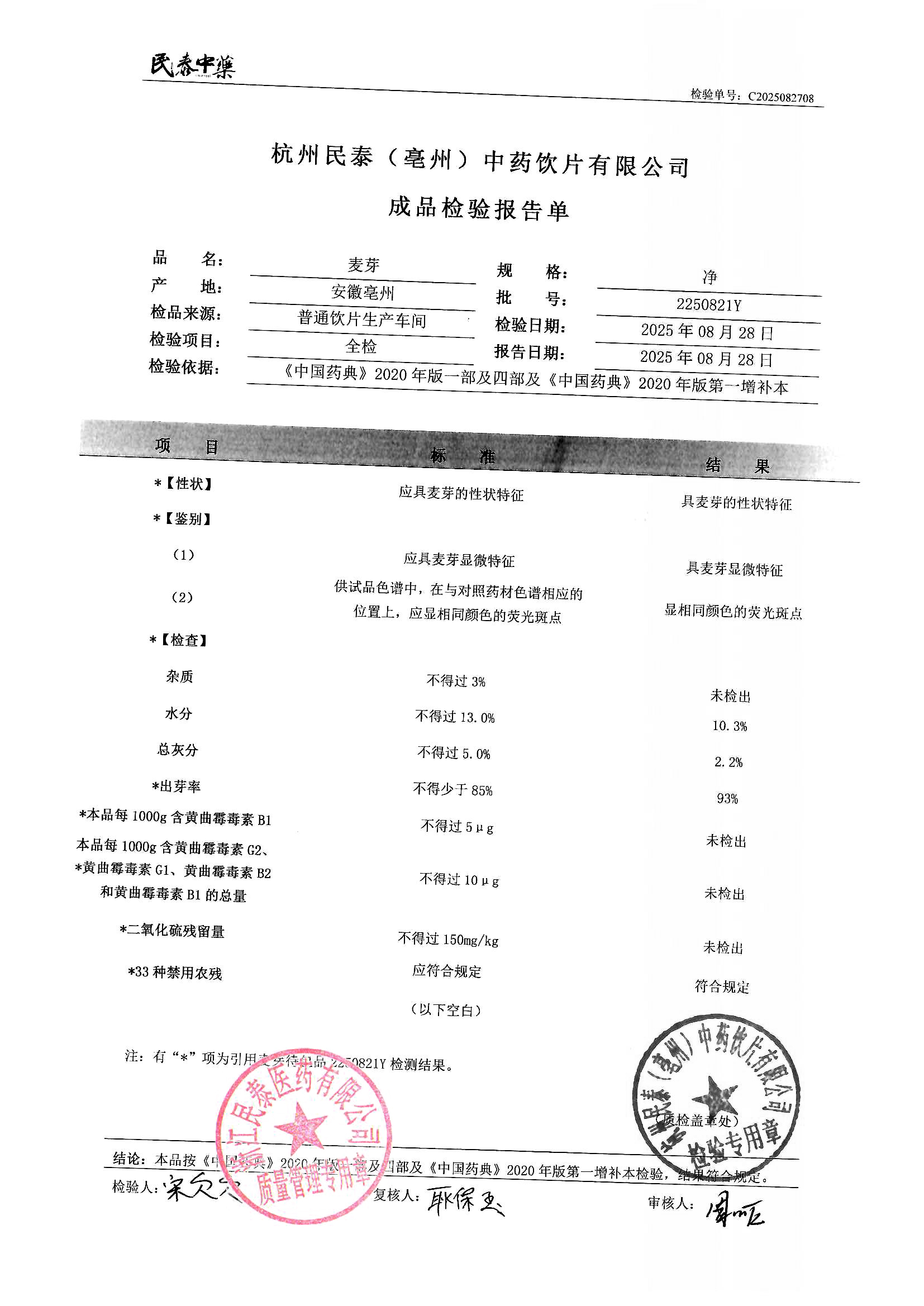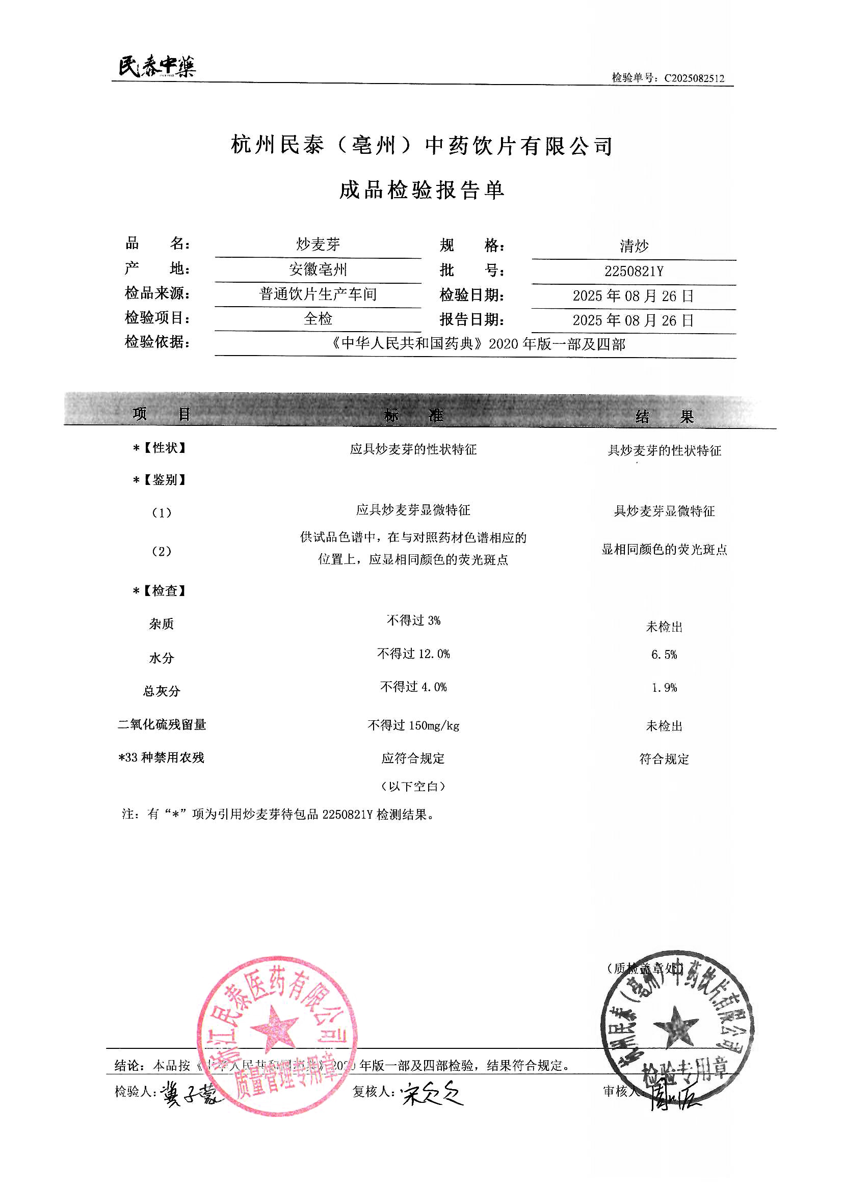杭州民泰(亳州)中药饮片有限公司 |