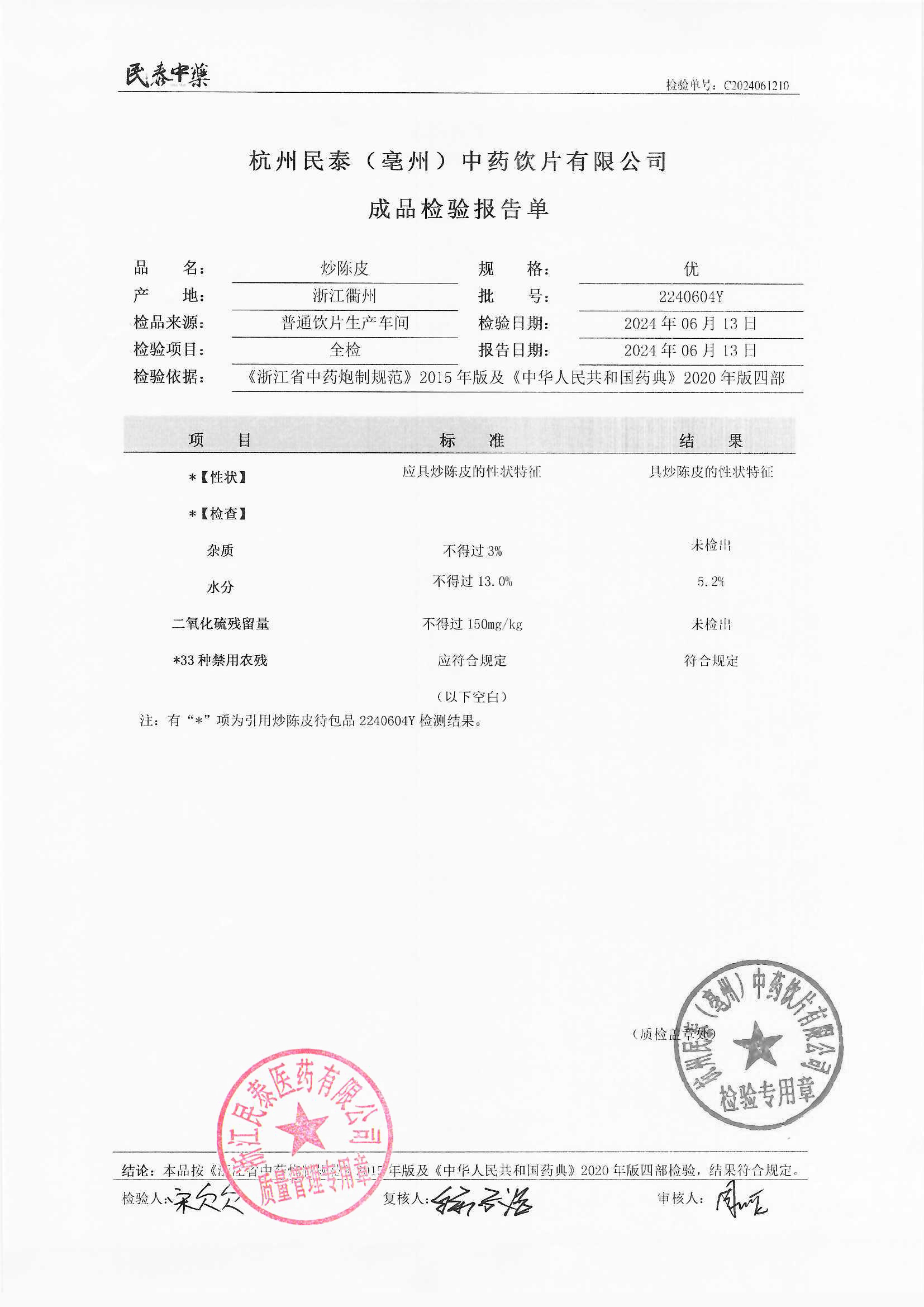 杭州民泰(亳州)中药饮片有限公司 |