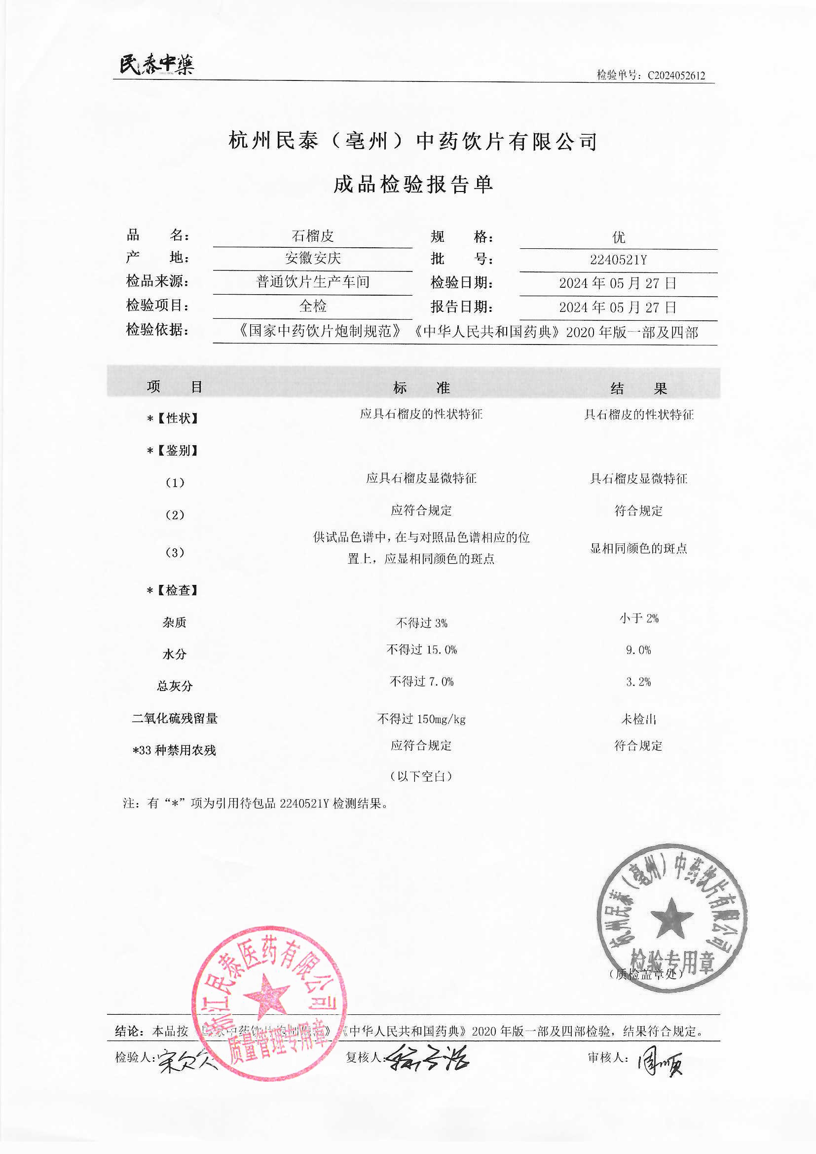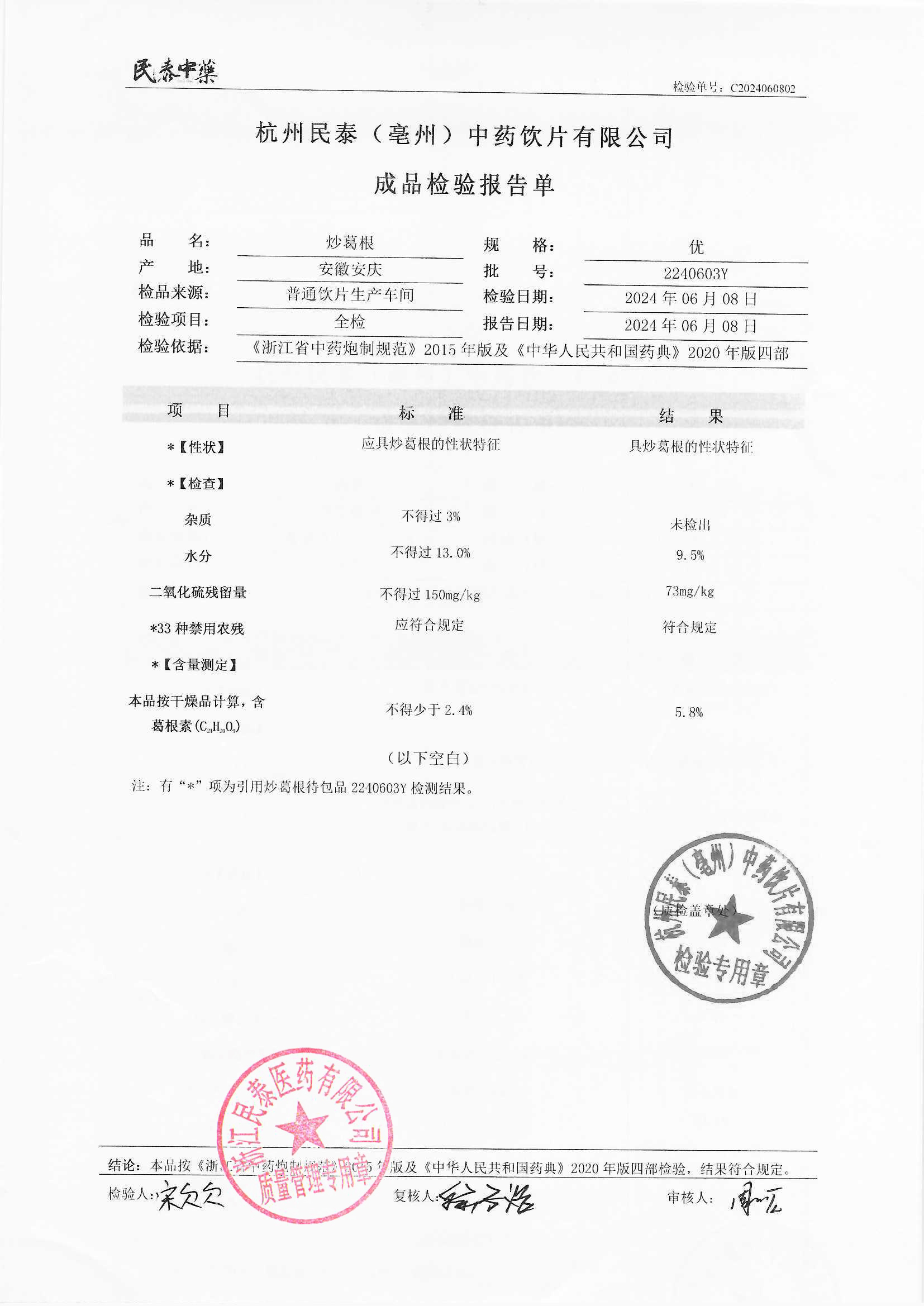 杭州民泰(亳州)中药饮片有限公司 |