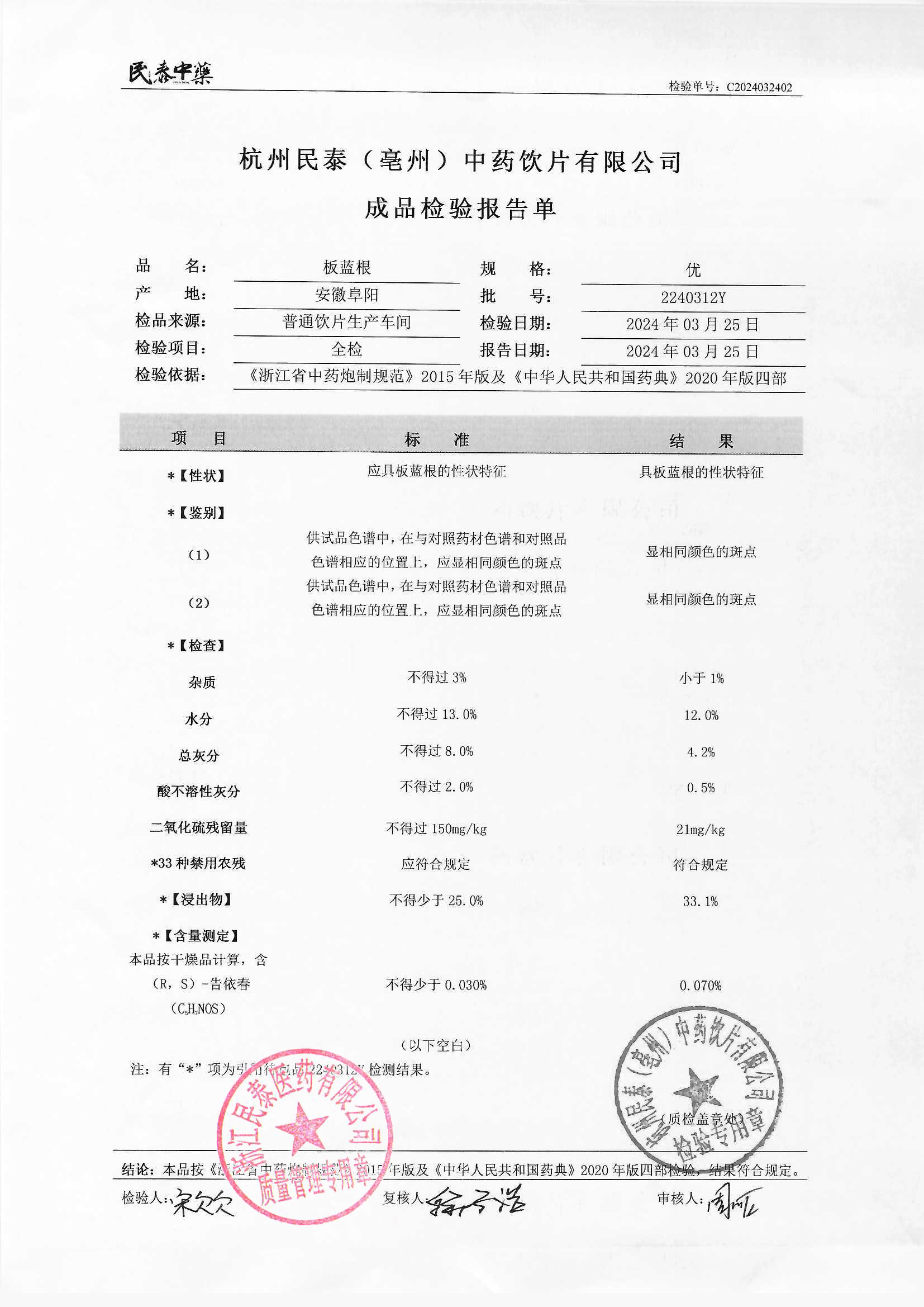 杭州民泰(亳州)中药饮片有限公司 |