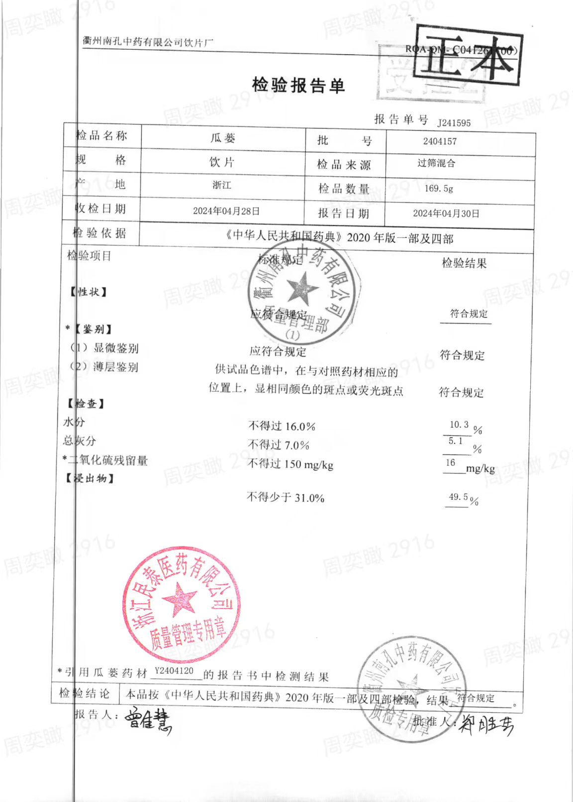 衢州南孔中药有限公司饮片厂 |
