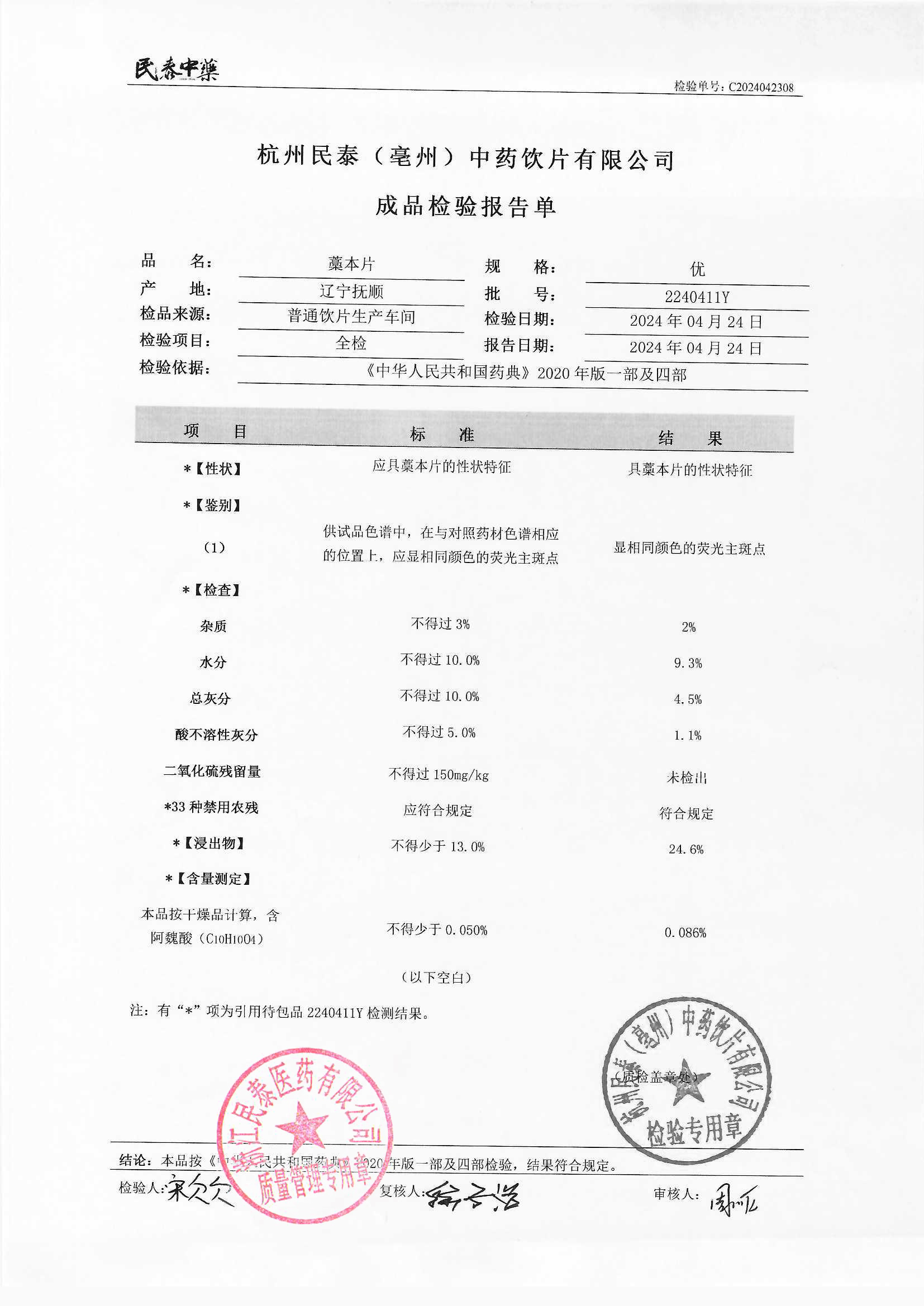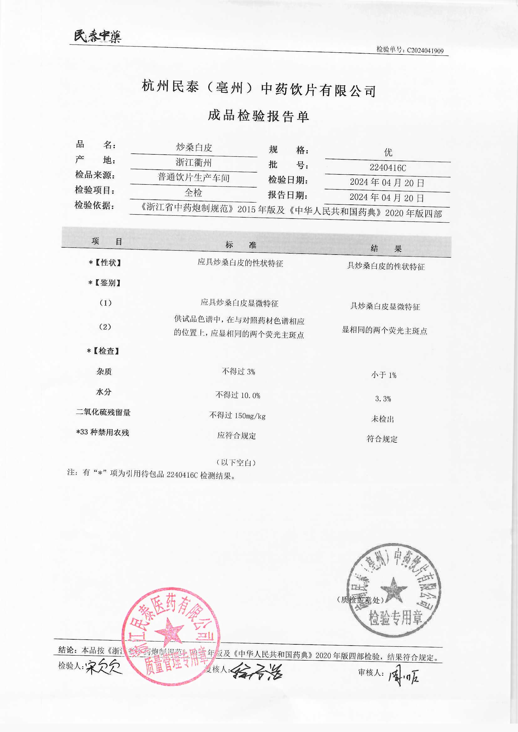 杭州民泰(亳州)中药饮片有限公司 |