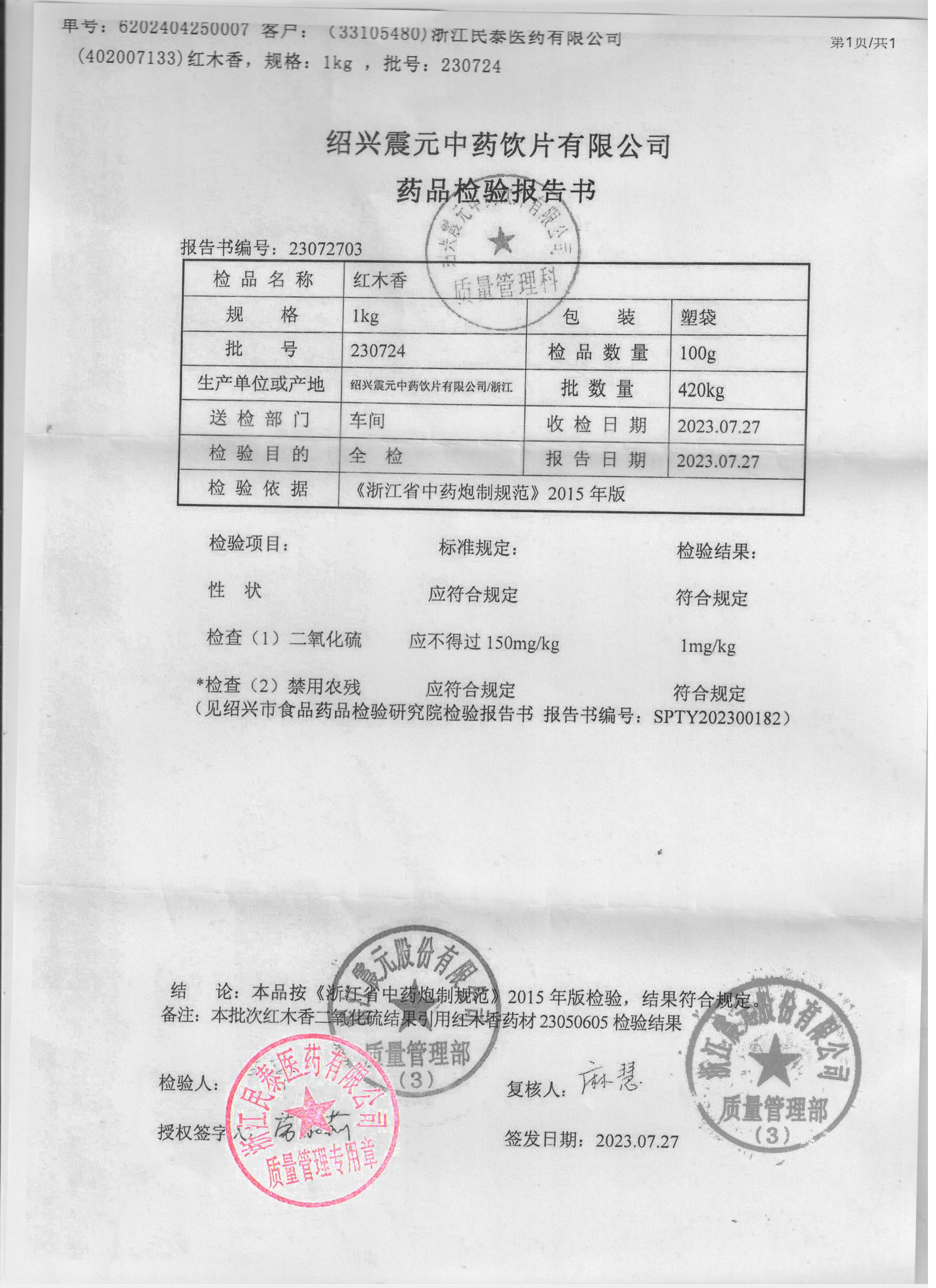 绍兴震元中药饮片有限公司 |