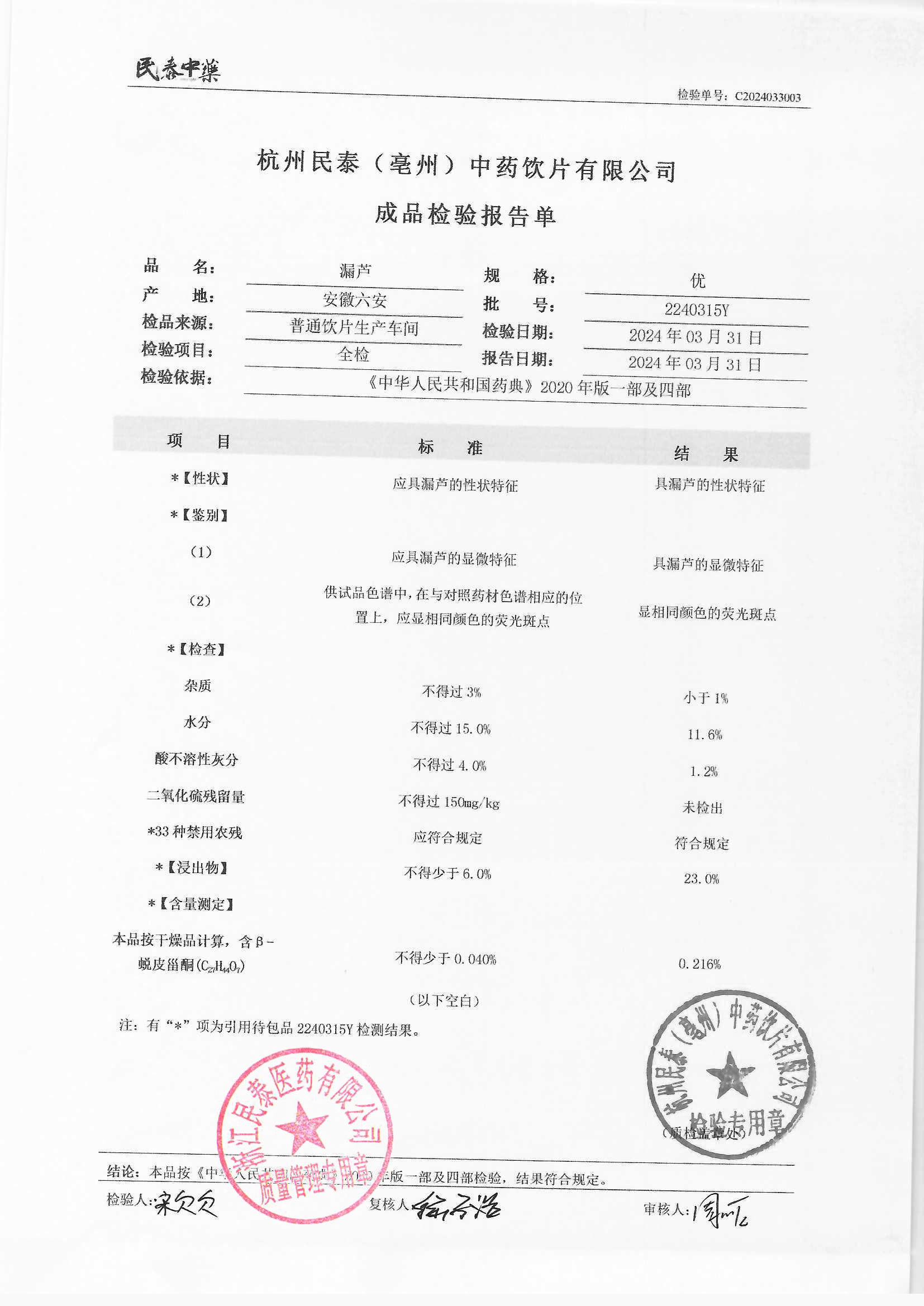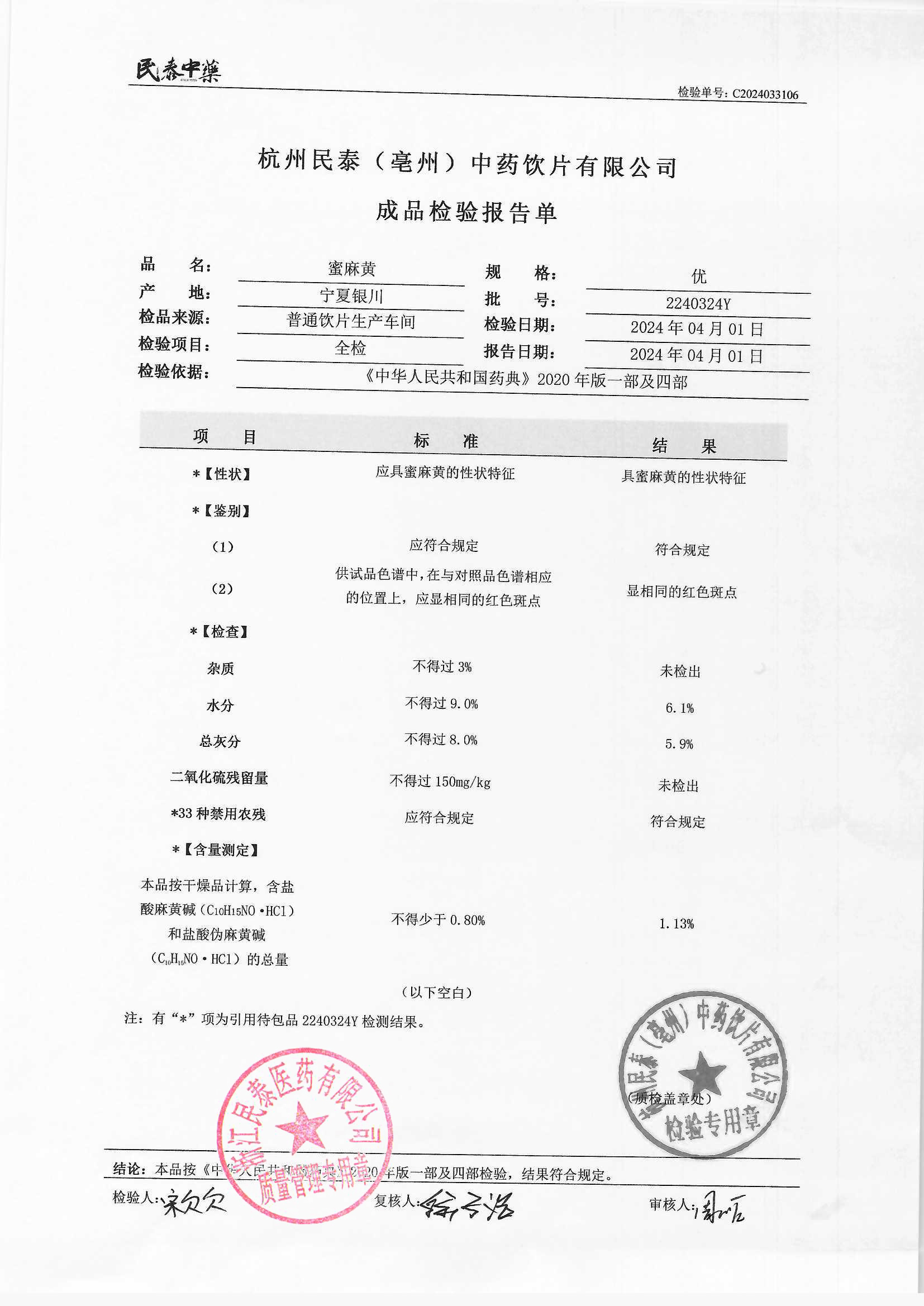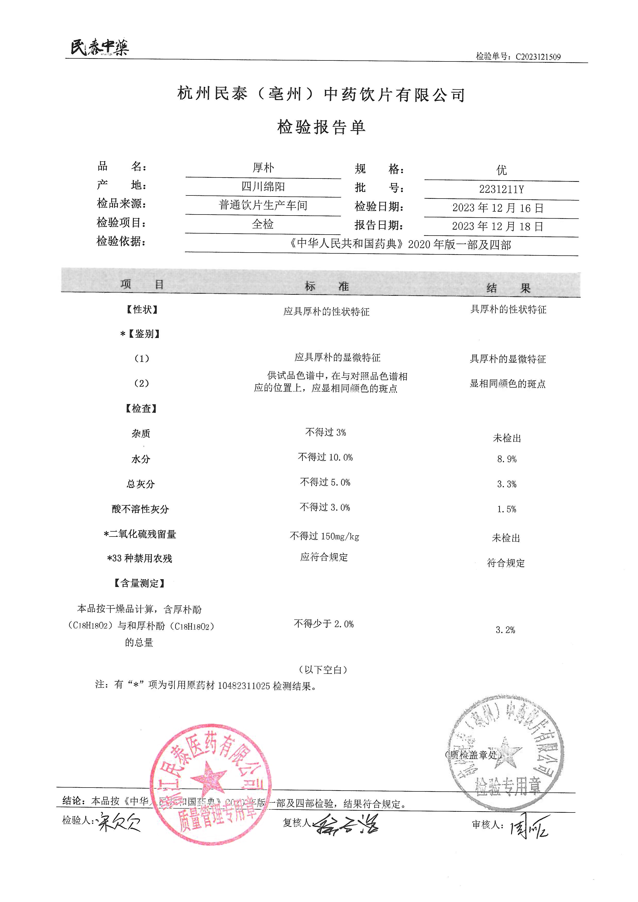 杭州民泰(亳州)中药饮片有限公司 |