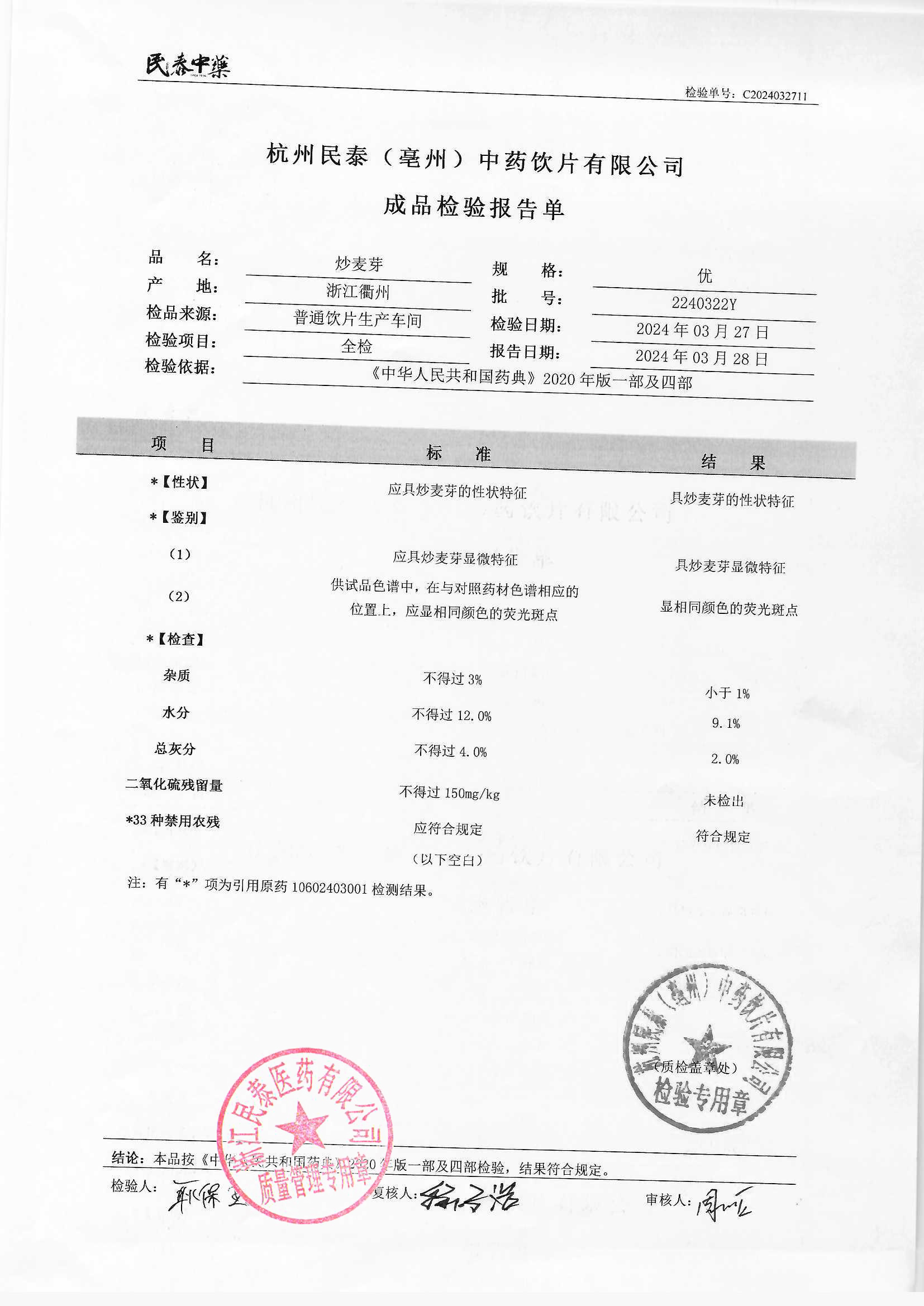 杭州民泰中药饮片有限公司 |