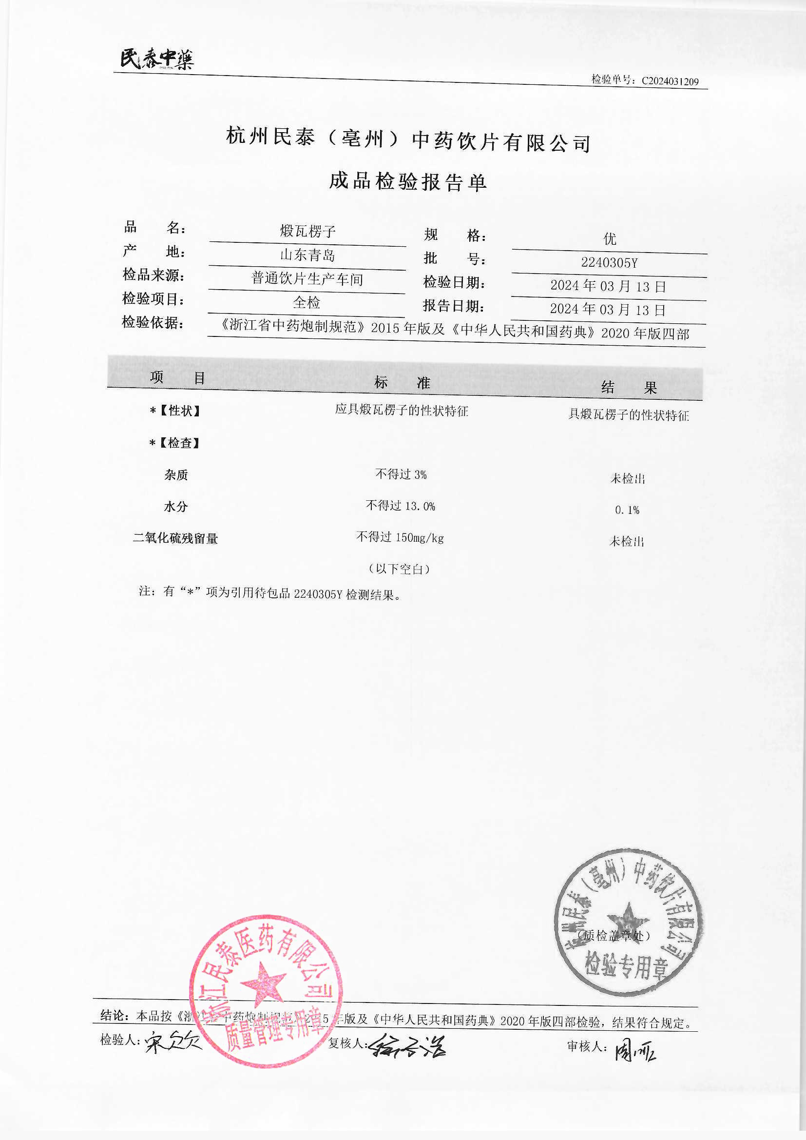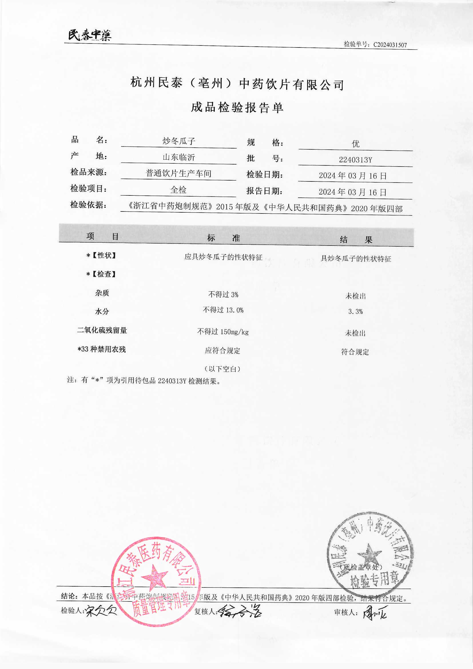 杭州民泰中药饮片有限公司 |