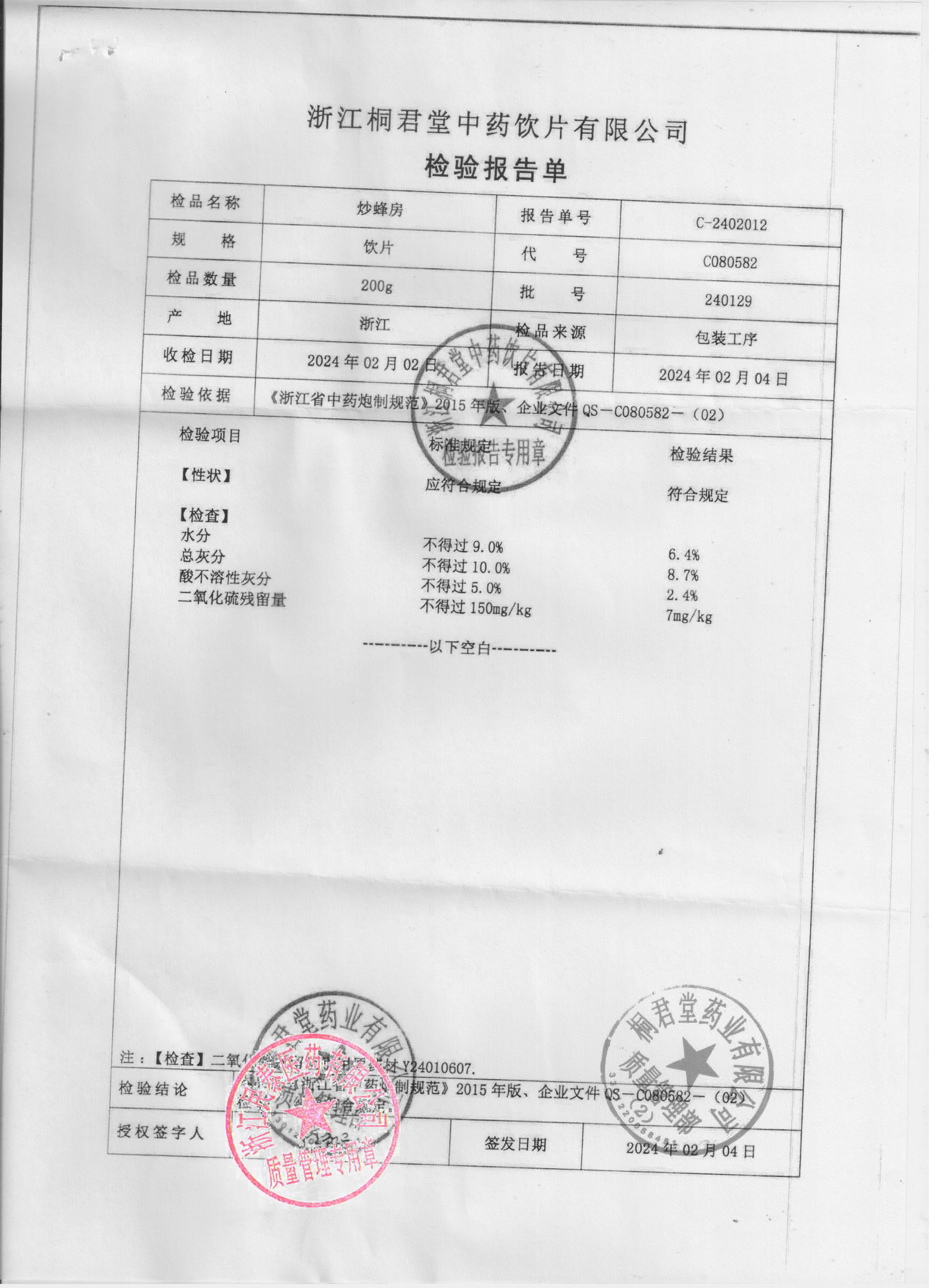 浙江桐君堂中药饮片有限公司 |