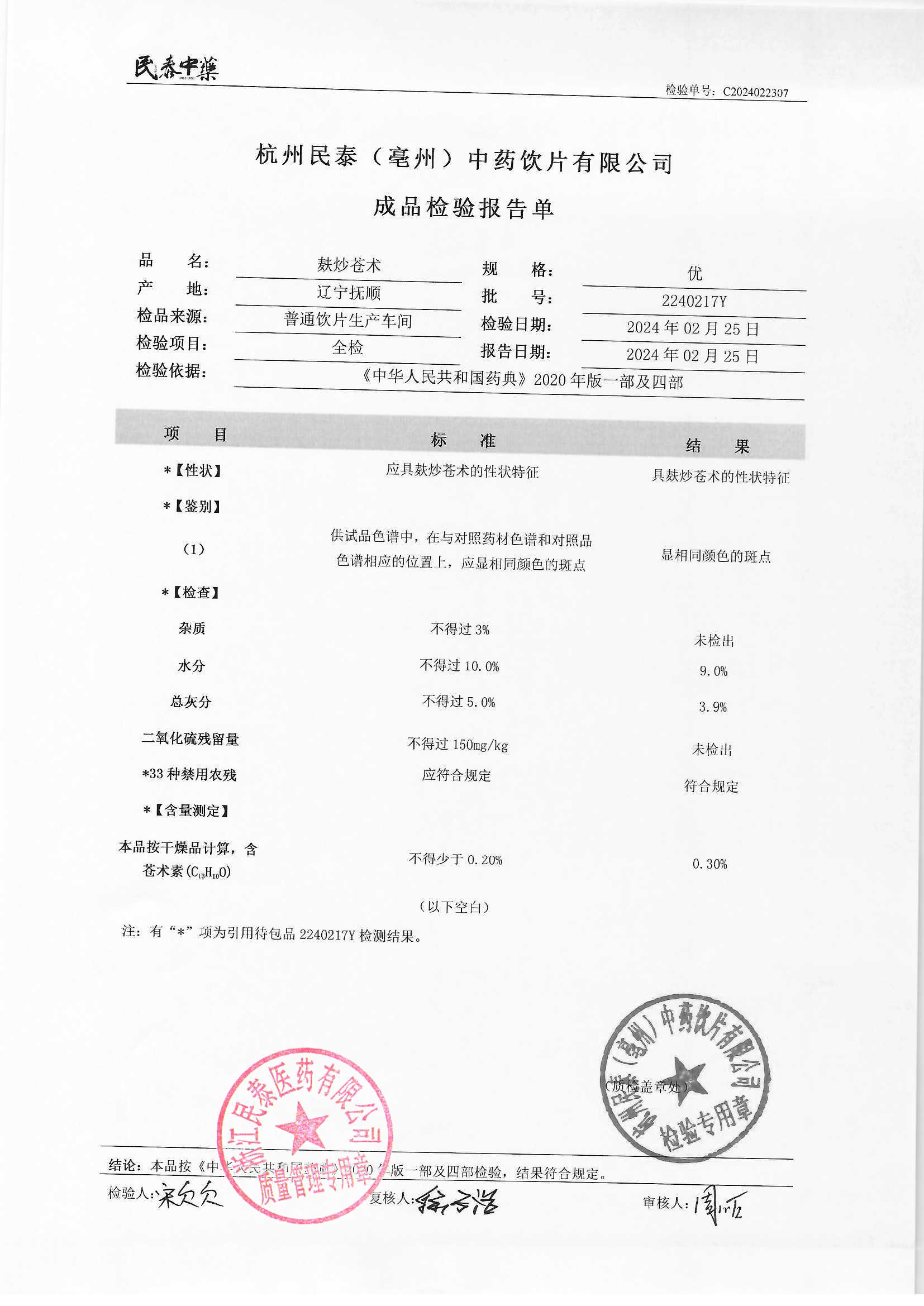 杭州民泰(亳州)中药饮片有限公司 |