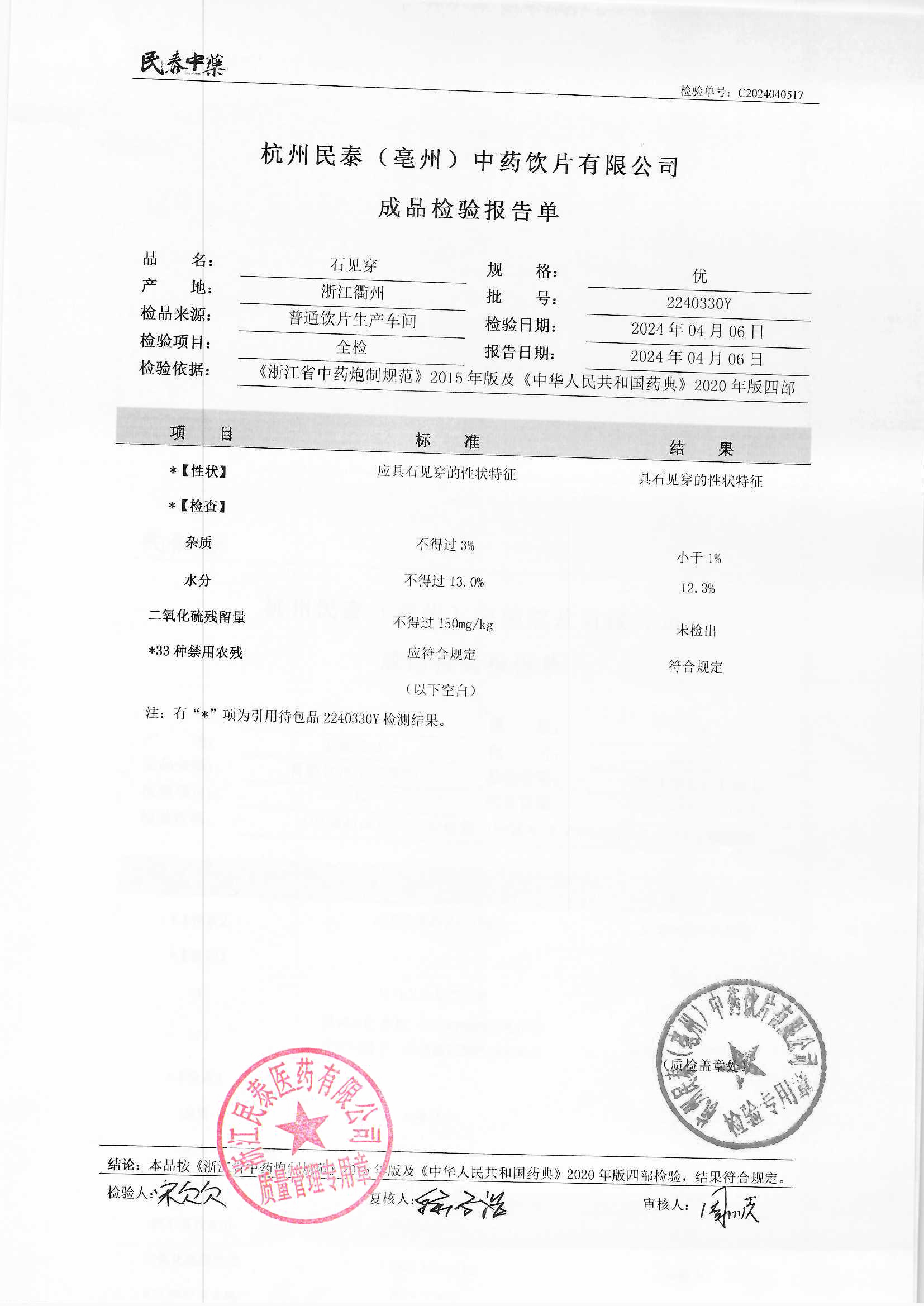 杭州民泰中药饮片有限公司 |