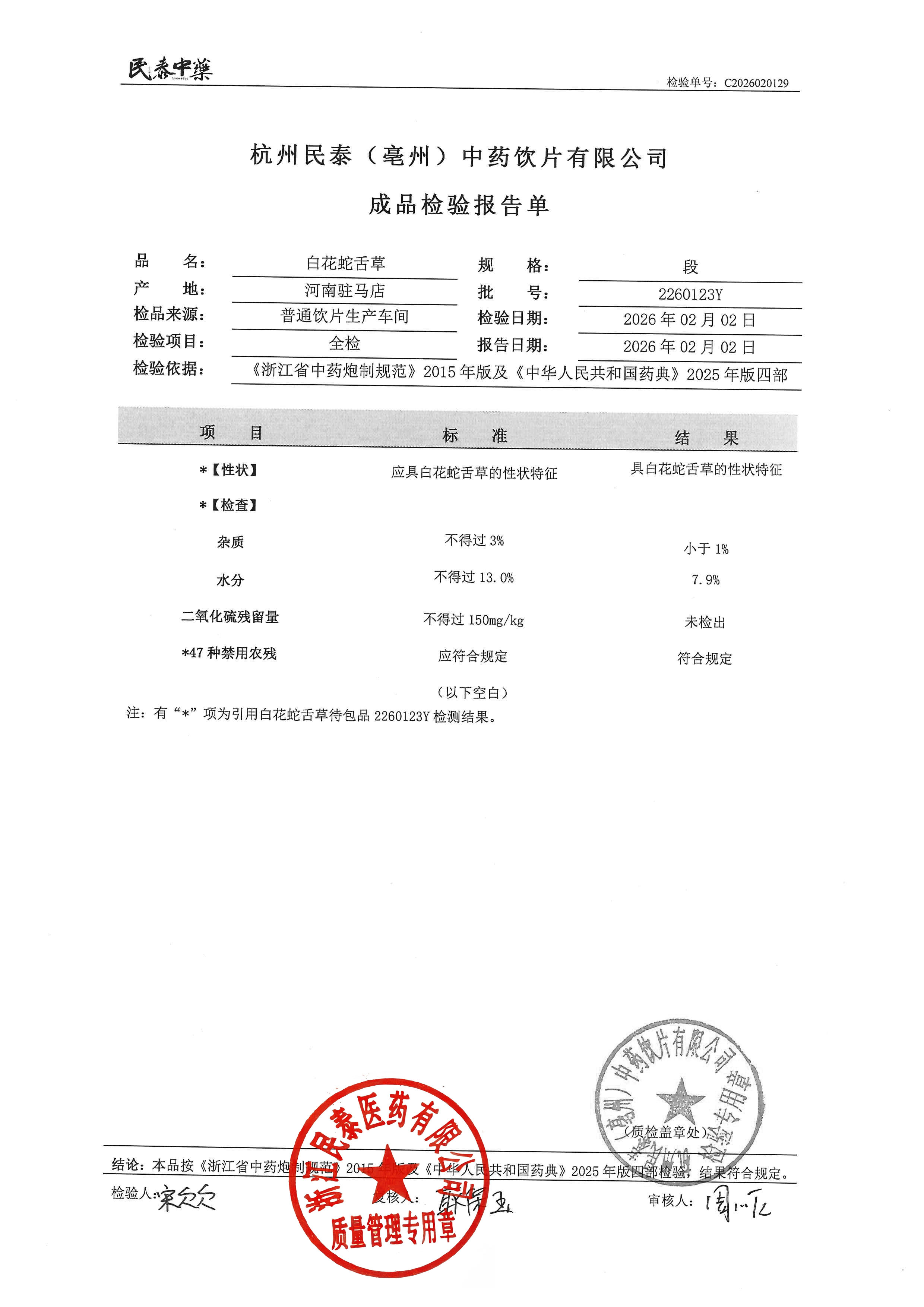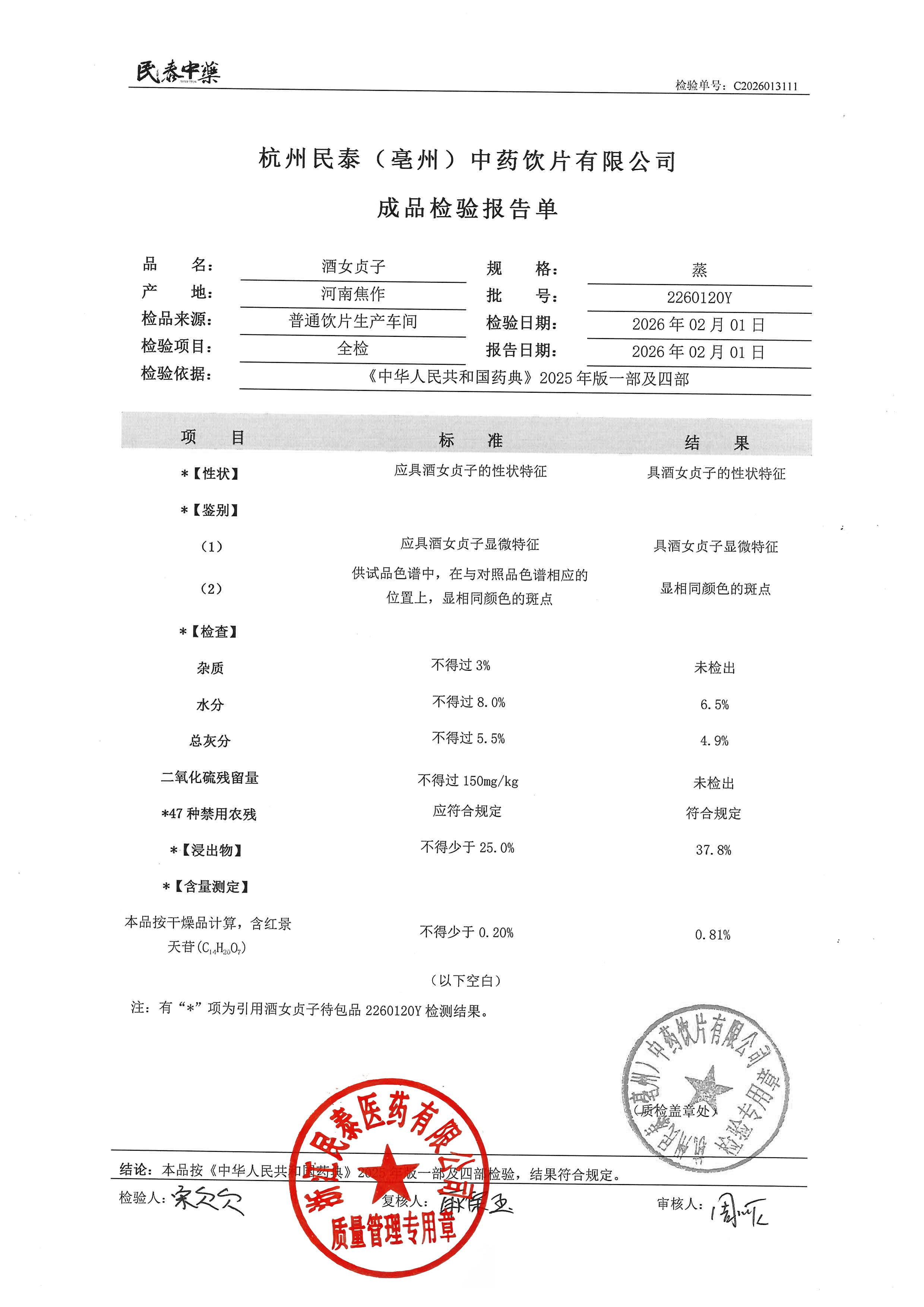 杭州民泰中药饮片有限公司 |