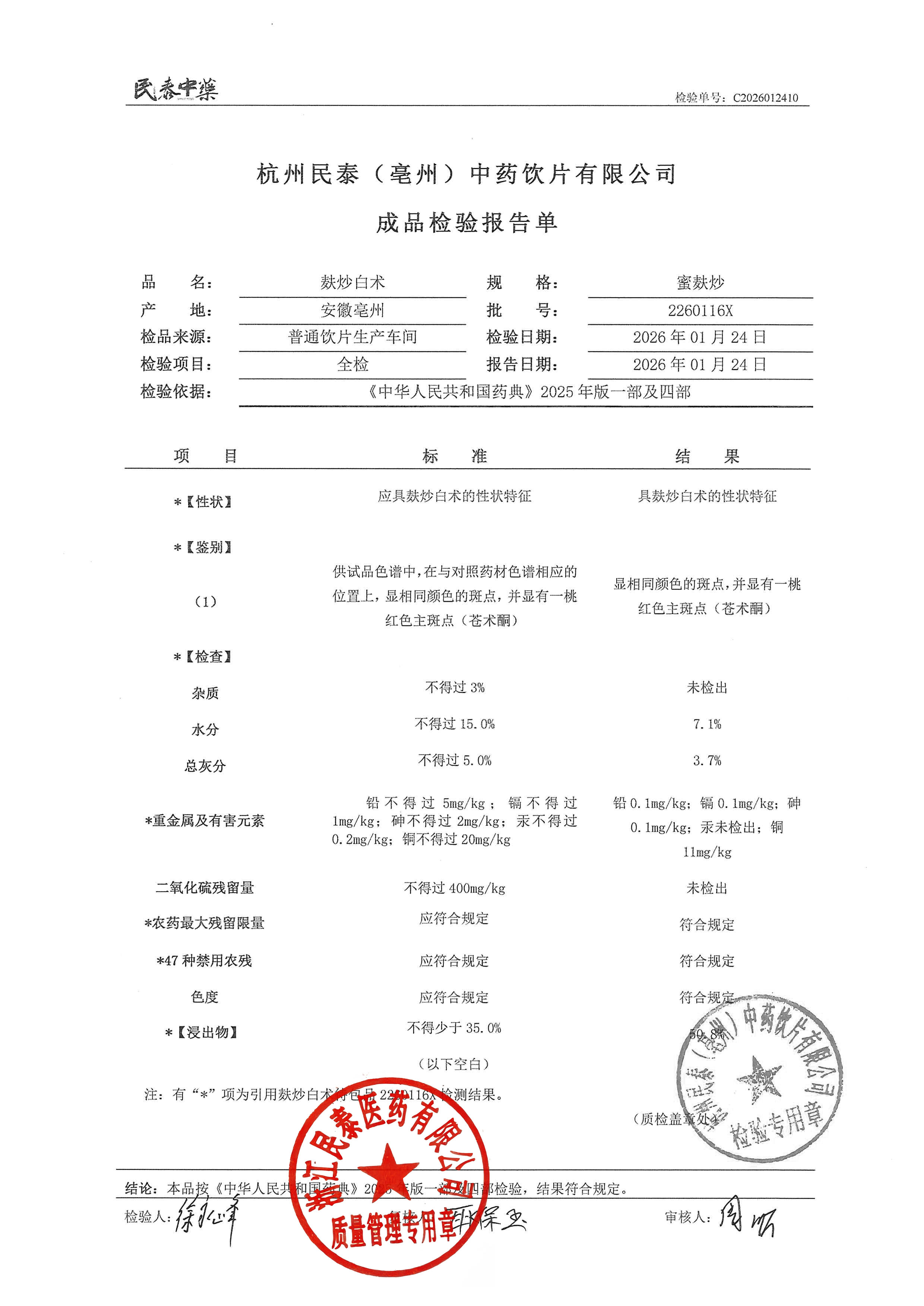 杭州民泰(亳州)中药饮片有限公司 |